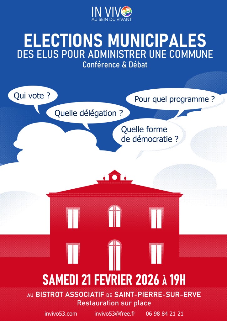 Le samedi 21 février à 19 h, nous proposerons une soirée sur le thème des élections municipales qui auront lieu les 15 et 22 mars prochains. En 2023, nous avions présenté une histoire de l’organisation des communes depuis l’ère médiévale à nos jours ainsi qu’une histoire des maires de notre village depuis 1790. Cette fois-ci, nous évoquerons plus particulièrement le principe de la loi électorale, le fonctionnement d’un conseil municipal. De plus, nous présenterons un projet alternatif de gestion municipale intitulé « Fréquence commune » axé principalement autour du concept de démocratie participative à l’échelle d’une municipalité. (la Bazouge de Cheméré fonctionne déjà de cette façon).