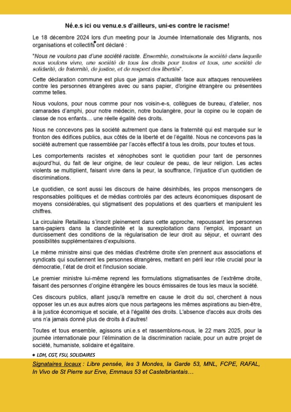 MANIFESTATION DU 22 MARS CONTRE LE RACISME